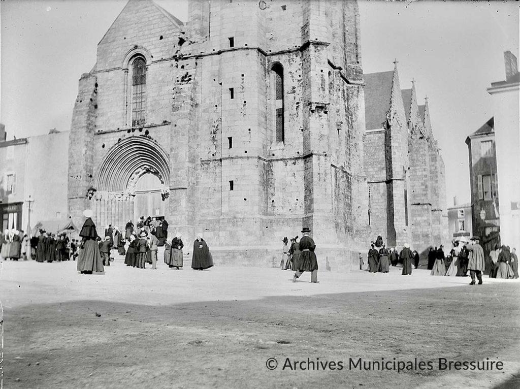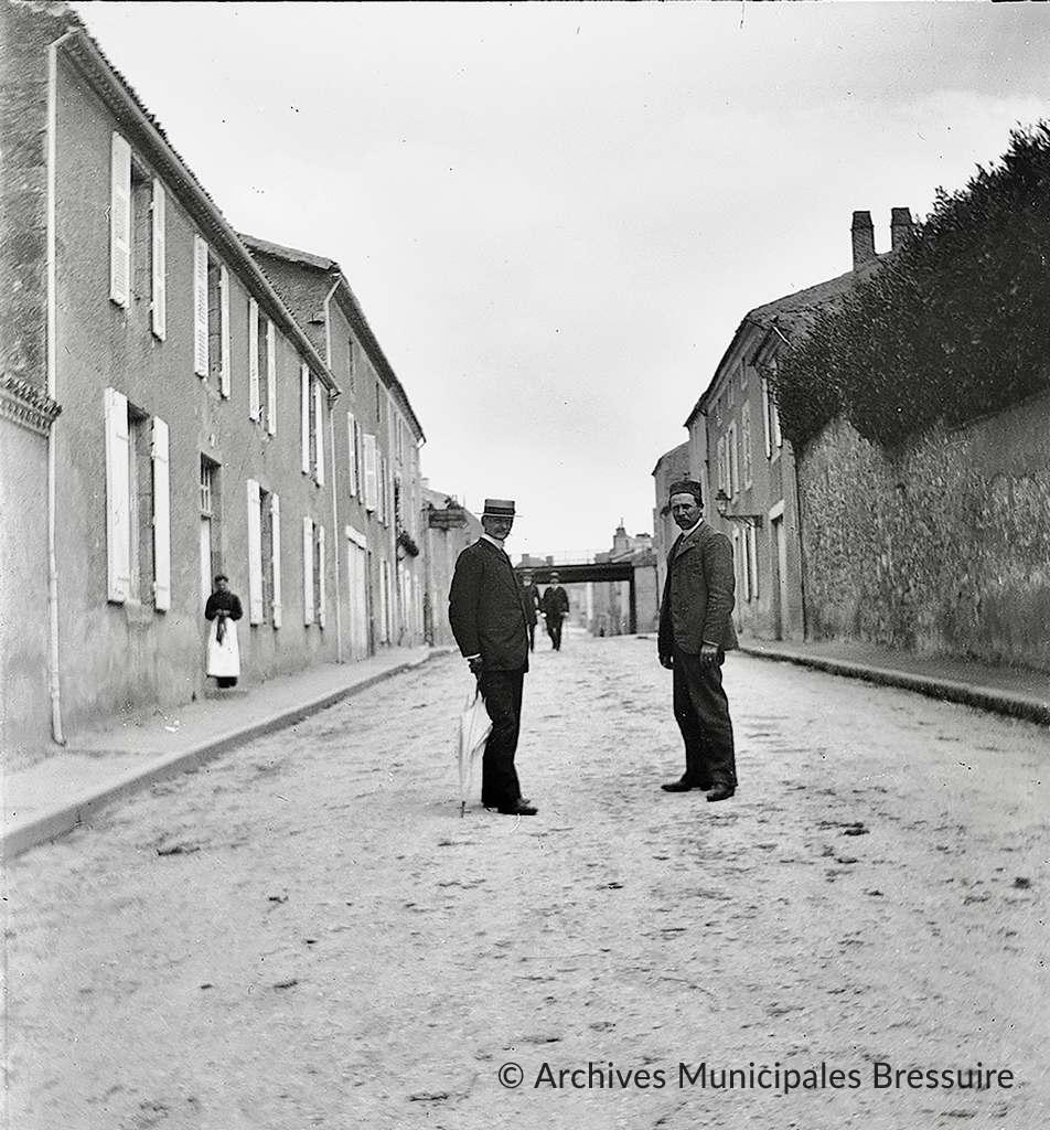 Outre les photographies de la rue Boussi et du château Allonneau, le fonds Ardouin comporte une vingtaine de clichés qui représentent Bressuire au début du XXème siècle. À côté des classiques vues du château ou de l’église Notre-Dame, on appréciera le caractère inédit de prises de vue d’un intérêt ethnographique certain : sortie de l’école publique, vues du cimetière, déplacements des gendarmes à cheval, manifestation en l’honneur du Général André, aperçus de la fête foraine de la place Saint-Jacques, entrées et sorties de ville.