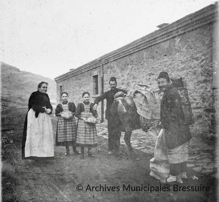 Près d’une petite montagne, on retrouve la même maison de pierres construite de plain- pied. Tous les personnages regardent l’opérateur en souriant. Deux hommes coiffés de fez, boulangers ambulants, encadrent un petit cheval ou un mulet qui porte un imposant panier tressé. Au premier plan, un homme tient un grand sac de toile à moitié plein. Au second plan, un autre homme tient un grand pain dans sa main gauche. Avec sa main droite, il semble avoir distribué deux autres pains que Victoire et Émilie, sœurs jumelles aînées des Foucart, arborent fièrement. Madame Foucart se tient à côté d’elles.