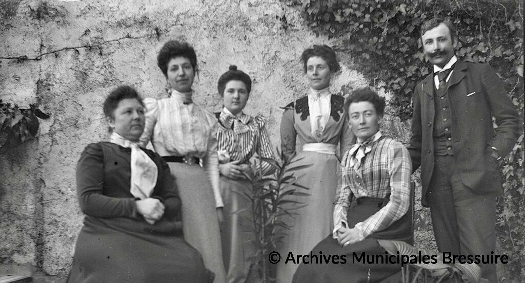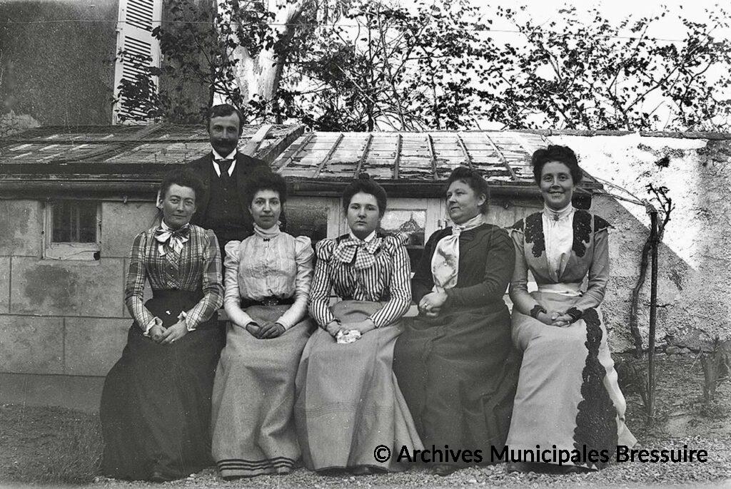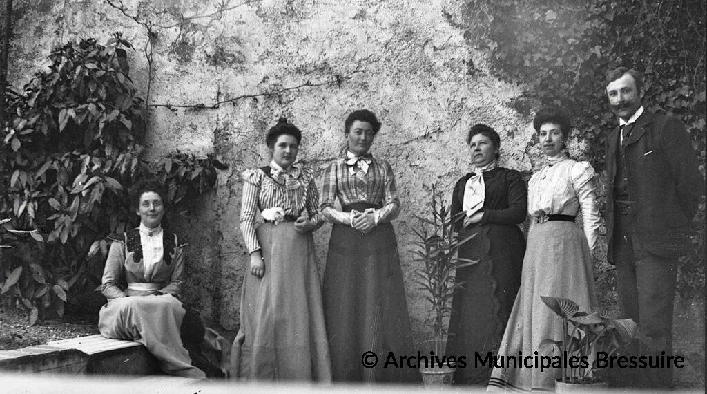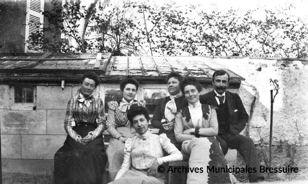 Jeunes femmes des familles Ardouin-Foucart-Métayer. Au centre, Louise Bouju. Debout, le docteur Léopold Métayer.