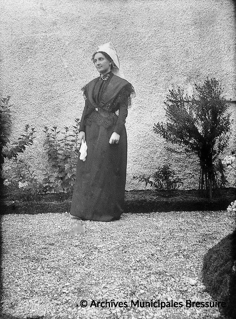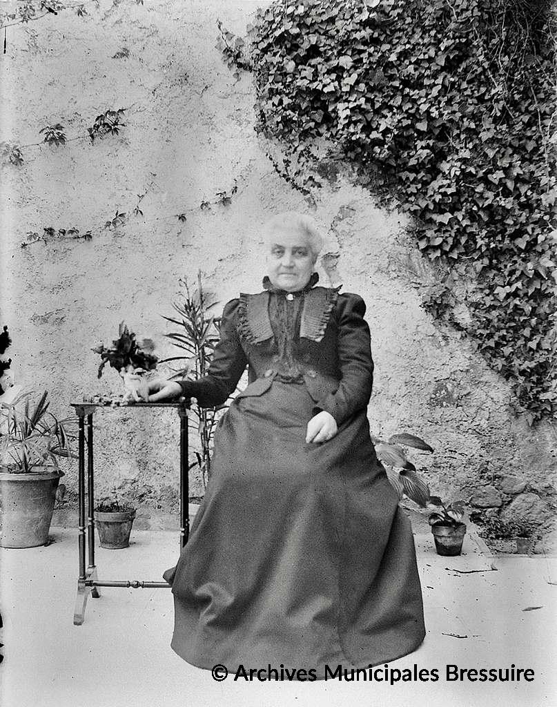 Sur la terrasse. Sans doute Joséphine Ripault, épouse Ardouin, mère de Henri.