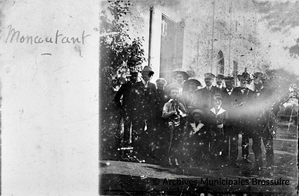 Quatre photographies de cet ensemble sont, de manière certaine, prises à Moncoutant. On peut penser que c’est également le cas pour les photographies de groupes. Certains indices rendent cette hypothèse crédible : présence accrue du Dr Léopold Métayer, sièges dont le dossier en cuir porte le chiffre AM (pour le couple Ardouin-Métayer).
